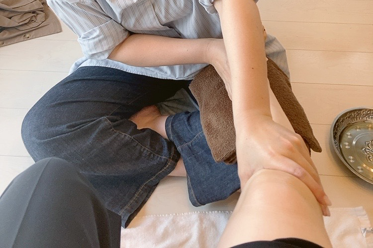 オイルを使用し、手のひら、指、肘、そして時には腕を使い、筋肉のコリ、緊張をゆるめ、ほぐします。
